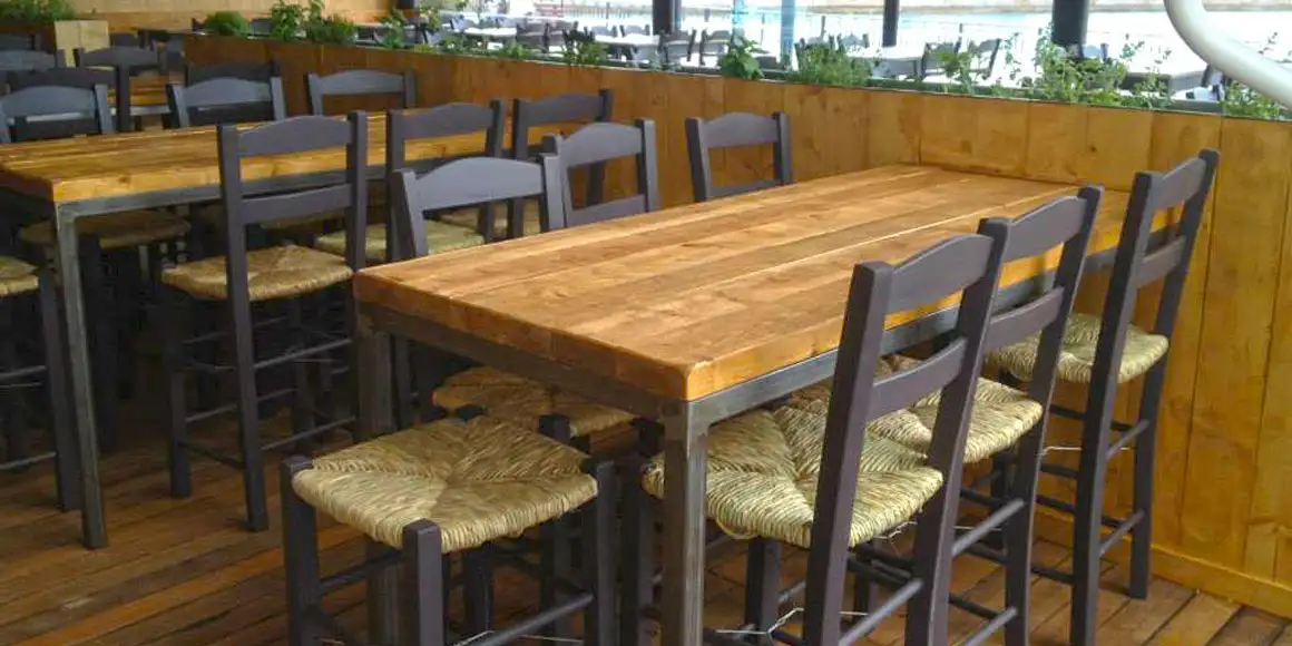 Κατασκευάσαμε τραπεζαρίες, ζαρντινιέρες, ράφια, πίνακες ανακοινώσεων και φυσικά τον πάγκο όπου θα παρασκευάζονται τα προϊόντα.
