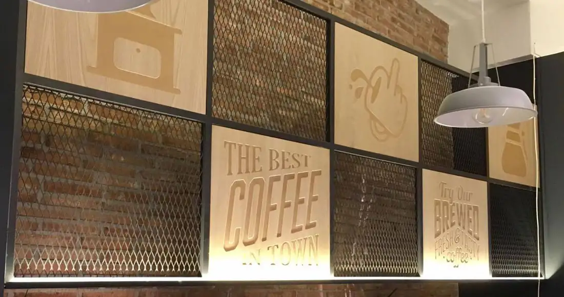 Στο καφέ Coffee Bean στη Χαλκίδα, είχαμε ως βάση το ξυλο δρυς. Μασίφ,σε σταθερές κατασκευές και επενδεδυμένα mdf και κοντραπλακέ σε μεγάλες επιφάνειες όπου χρειάστηκαν να γίνουν επενδύσεις.
