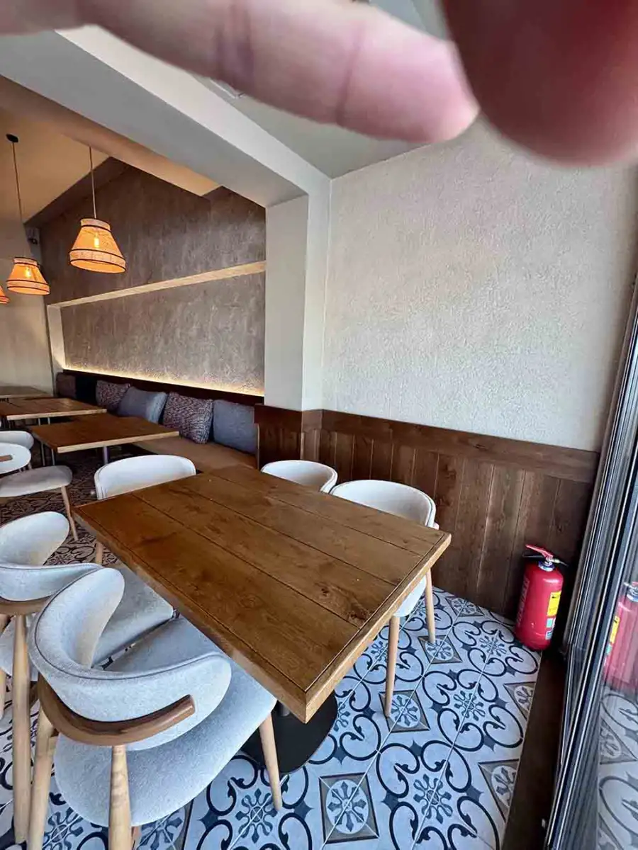 Ανακαίνιση Επένδυση Ορόφων Εστιατόριο Καρέκλες Κατάστημα Καφετέρια Κομμωτήριο Μπαρ Ξύλινα Διαχωριστικά Ξύλινες κατασκευές Οροφές Πάγκοι Πόρτες Τραπέζια Χειροποίητα Έπιπλα